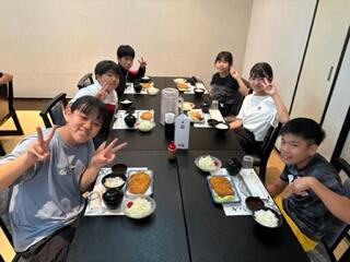 ホテルに到着し、係会と夕食を終えました。たくさんのご馳走をモリモリ食べていました。