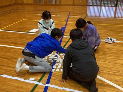 11月29日(水)、社会福祉協議会東郷支所の方々3名をお招きして7年生の総合的な学習の時間が行われました。7年生の総合的な学習では、日向市東郷地域振興計画の東郷地域の持続可能性を高める7つの方針をもとに、3つのグループにわかれて福祉の視点からそれぞれのグループで東郷町を考える学習を進めてきました。