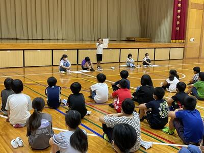 体験発表では、代表の児童が、「今回の宿泊学習では、特に友愛・協同を高めることができたと思います。登山では、お互いに励まし合いました。部屋の片付けなどでは、仲間と共に協力し合いました。」「今回学んだことを、これからの学校生活でいかしていきたいです。」と感想をしっかりと話しました。