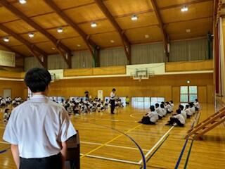 それぞれの部活動キャプテンから、大会に向けた熱い決意表明が述べられ、児童生徒の皆さんから大きな拍手をもらいました。