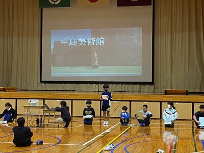 後期ブロック集会では、6年生が発表しました。6年生はふるさと再発見学習で見学した「東郷メディキット」「中島美術館」について発表しました。「中島美術館の作品の中で、私たちが気に入ったのは『親切大和』と『広がりに出会う』という絵画でした。」「東郷メディキットでは、どの工程でも丁寧に取り組んでいるので、できあがった製品はたくさんの国に信頼されています。」と見学で学んだことを発表していました。はきはきと発表することができた6年生、素晴らしかったです。