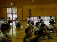最後に校長先生が、「発表した2人は、自分のがんばったことをしっかりと振り返ることができていました。みなさんも4月に立てた目標を振り返ってみてください。達成できた人は、新たな目標を決めて、また取り組んでください。」と話されました。また、平成19年8月11日に日向市の伊勢ヶ浜海水浴場で起きた水難事故を紹介し、「命は戻ってきません。みなさん一人一人の命を大切にしてください。夏休みは、安全に気を付けて、2学期始業の日をみなさんと迎えられたらと思います。」と話されました。