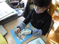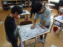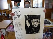4年生の図工の学習の様子です。版画の作品作りに取り組んでいました。安全に気を付けながら彫刻刀を使って彫りをがんばったり、友達と協力して刷りの作業を進めたりしていました。できあがった作品は来年のカレンダーになるとのこと。友達に作品を見せながら満足げな表情の4年生でした。