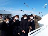 『午前中に水族館「海きらら」を見学。バックヤードツアーでは、あまり見ることのない水族館の裏側を見学する事が出来ました。イルカショーでは、水を浴びた先生・生徒がいました~!残念ながら、暴風のため、遊覧船には乗る事が出来ませんでした。』