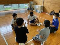 今年度初めての顔合わせでしたので、まずはお互いに自己紹介をしました。それから、お互いのことをもっと理解し合うために、「アドジャントーク」を行いました。「アドジャン」とは、グー(0)、指1本~指5本までの6種類をかけ声とともに出すじゃんけんのことです。「アドジャントーク」では、アドジャンで出された全員の指の数を合計し、その1桁の数字で11個のトークお題にそって話します。トークお題にそって生き生きと話し合う子供たちの姿がとても印象的でした。