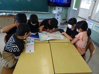 今回は、班ごとに分かれて、修学旅行2日目の班別自主研修の計画を立てました。パンフレットで行きたい場所を決めて、地図を見ながら「どのルートで行こうか?」と楽しそうに話し合っていました。