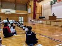 校長先生は、東郷学園の近くで起きた交通事故の話題にふれ、「周囲に気をつけて歩くこと」「ガードレールや車道から離れて歩くこと」など、交通安全の大切さについて話されました。