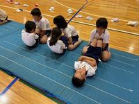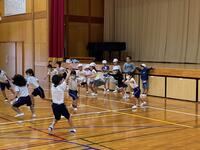 1~4年で構成される前期ブロックでは、前期ブロックリーダーである4年生が進行を務めます。今回は、「だるまさんが転んだ」をしました。1年生から4年生まで、とても楽しむことができました。