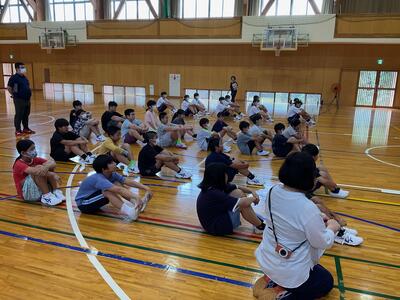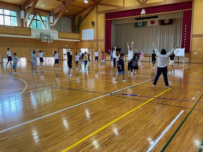 ワークショップが進むにつれ、学年・男女関係なく誰とでもグループを組むようになりました。また、どの児童生徒も元気よく声を出したり体全体で表現したりするようになりました。プロの方々の声かけやアドバイスが素晴らしいと感じました。貴重な経験ができました。本当にありがとうございました。