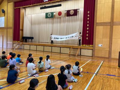 小学部集会では、体育主任の先生から話がありました。1つは、運動会の練習が始まることについてです。「運動会の練習が始まるので、体の調子をしっかりと整えましょう。また、運動会の行事を通して、友達との関係をさらによくしていきましょう。」と話されました。もう1つは熱中症についてです。「熱中症にならないように十分気を付けましょう。もし、熱中症かなあと感じたら早めに先生に知らせましょう。」と話されました。