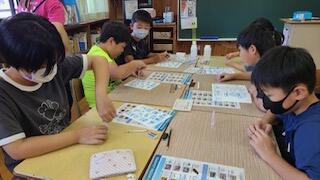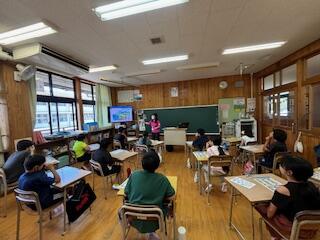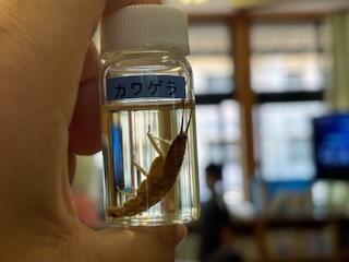 9月9日(月)に、事前学習として日向市保健所と環境政策課の講師の先生方に指導していただきました。初めに昆虫などの水辺の生物の実物を見ながら、「わ~、小さい!」「足がいっぱいある!」などの声があがっていました。資料にある生物の写真と見比べて、名前を確認したりしていました。そして、森の役割や川の役割についての説明を聞き、質問に対しても積極的に発表できました。最後に数種類の水に液体を加え、色の変化などを確認しました。