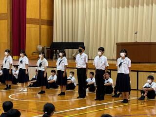 本日は朝の集会を行いました。校長先生からは「2学期の始業の日に立てた目標がもしうまくできていない場合は、ここからまた再スタートしていけば良いです。継続することが何よりも大切です。」というお話と、「言葉を大切にしましょう。」というお話がありました。思っていなくても、つい口から出てしまった言葉でお互いにいやな思いをさせてしまうことがあるかもしれないので、慎重に言葉を選んで使っていきたいものです。