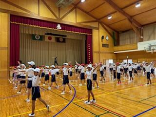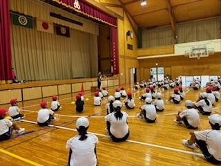 まだまだ暑い中、雨が降ったり止んだりのため、体育館での合同練習でしたが、”自分たちで運動会を作り上げよう!”という気持ちが表れるように、機敏な行動ができていました。