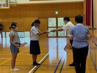 また、理科の「東臼杵地区サイエンスコンクール」、「日向市牧水かるた大会」、「国富ふれあい短歌大会」の表彰も行いました。