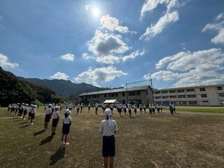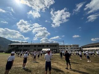 昨日はまさに秋晴れ!青空とともに、時折、涼しい風が心地よい中で運動会全体練習を行いました。