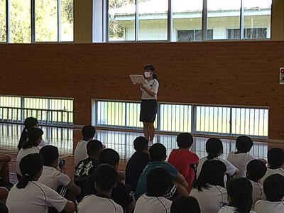 9月19日は、体育主任の先生から、運動会に向けた心構えや頑張ってほしいこと、期待していることについてのお話があり、『時間・服装・姿勢・気持ち』の4点の約束について全体で意識を高めることができたと思います。