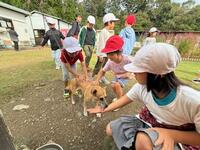 土が固く手で掘るのに苦戦していましたが、力いっぱいに引っ張ったり尻もちをついたり、どろんこになった手で大きなお芋を収穫しました。