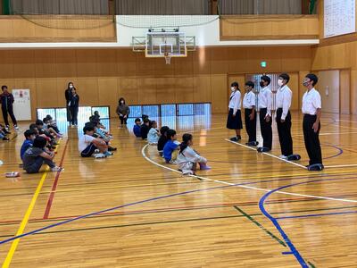 教頭先生が、「運動会では、皆さん素晴らしい頑張りを見せてくれましたね。2学期も44日過ぎました。残り36日です。残りの2学期も勉強にスポーツに頑張りましょう。」と話されました。また、「日曜日には、9年生が地域のイベントでがんばる姿を見せてくれました。また、県大会に出場したバドミントン部の選手の皆さんは、日向地区の代表として本当によく頑張っていました。ある校長先生からは、『東郷学園の選手の皆さんは、挨拶が素晴らしいですね。』と誉められました。これからもいろいろな面で頑張ってください。」と話されました。