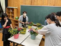6月8日(木)の夜、家庭教育学級の開級式及び第1回家庭教育学級が行われました。今回の学習会は寄せ植え教室です。今年度も日向市にある「花のたかはし」の店長さんを講師にお招きしました。昨年度は多肉植物を使っての寄せ植えでしたが、今回は花物やグリーンを使ってオリジナルの寄せ植えを作りました。できあがった寄せ植えは、見るだけで笑顔になるようなすてきなものになりました。