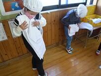 4月からは、2年生に進級する1年生。入学してから、いろいろなことを経験し、できることも日々増えています。これまで6年生にお願いしていた給食の準備も少しずつ自分たちでできるように只今練習中です。今は食缶や食器などを運んだり、配膳したりすることが主な役割ですが、2月ぐらいには、パンを皿にのせたり、おかずをついだりすることも始めるそうです。1年生のみなさん、がんばってね。