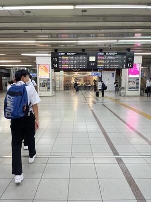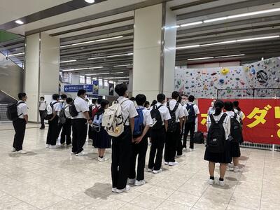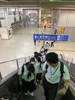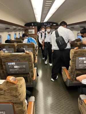 ホームに到着しました。初めて新幹線に乗るという生徒も多く、「ワクワクする!ドキドキする!」と口々に話してくれました。自分の座席を何度もしおりで確認しました。