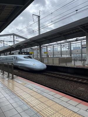 ホームに到着後、新幹線の往来を何度か見ました。「はっえ〜!」と目を輝かせて写真を撮る生徒もいました。