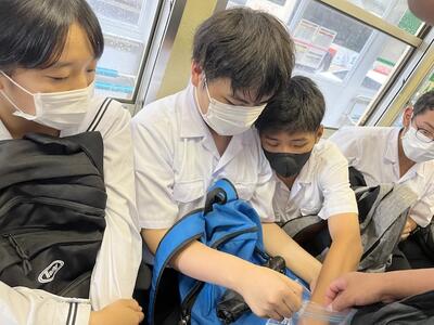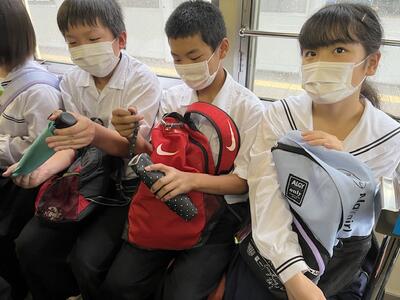 路面電車では、幸い座ることもできた生徒もいたので、少し休憩することもできました。
