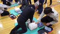 心肺蘇生やAEDの使い方を確認・実践し、新年度に臨みます。