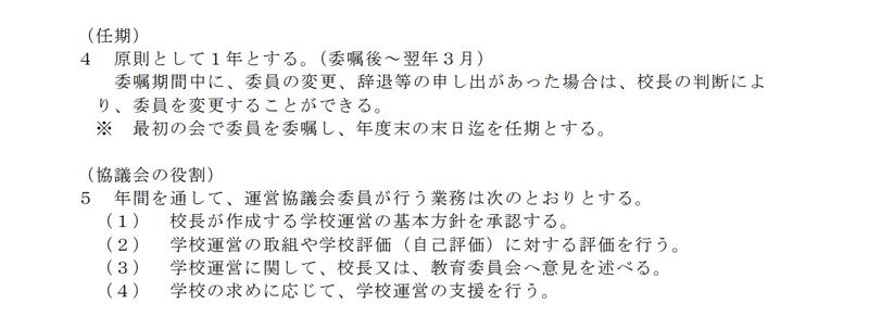 コミュニティ・スクールとは、「学校運営協議会」を設置している学校を指します。運営委員になった方々は校長が作成する学校運営の「基本方針(学校経営ビジョン)」を承認したり、「学校運営」について、教育委員会または校長に意見を述べることができます。