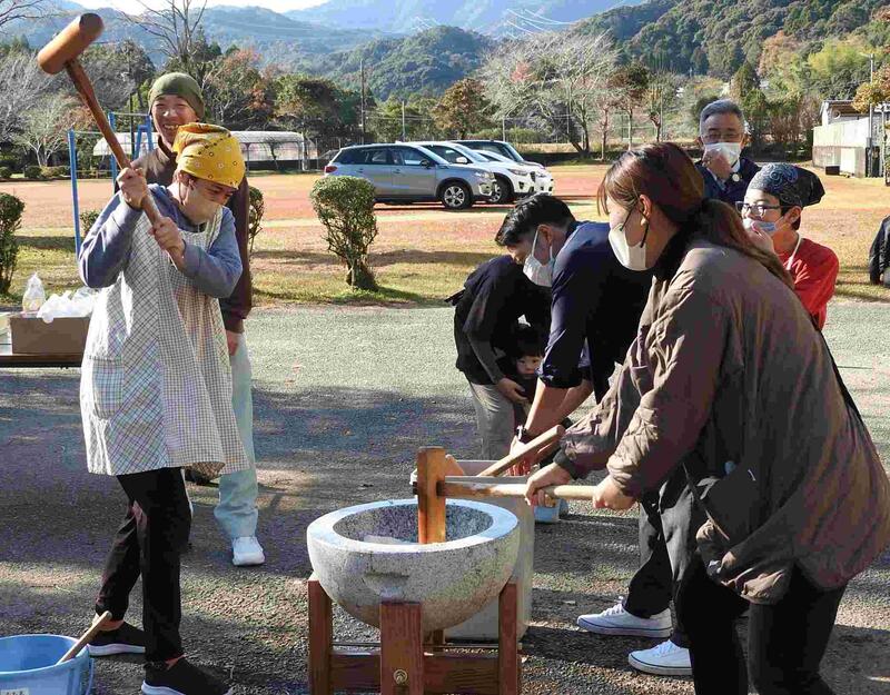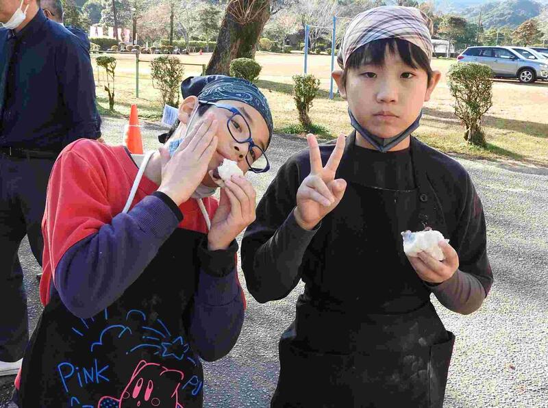 先週の金曜日に餅つき大会がありました。今年も気合田で育てたもち米を使って、児童・保護者・職員そして報道の方々にも参加してもらい、みんなで最後の餅つき大会を楽しみました。出来上がった餅は早速あんこを入れたり、醤油につけたりして食べました。コロナ禍から数年は家に持って帰ってから食べていましたが、今回は参加者全員で食べて笑顔いっぱいの餅つき大会になりました。お米作りにご協力いただいた皆様、餅つきに参加いただいた皆様本当にありがとうございました。