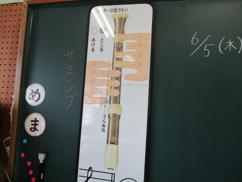 サミングとは、リコーダーの裏側にある穴を親指で操作して、通常の音程より高い音を出す技術だそうです。この間までは「タンギング」だったのに、また新たな技を子ども達がマスターしたようです。次はこの写真。