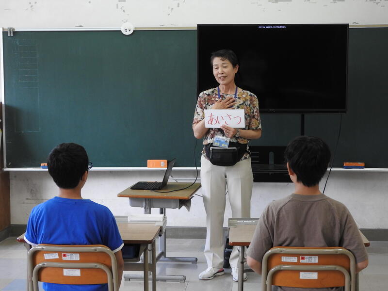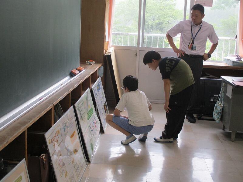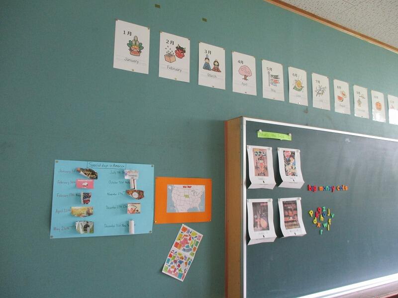 本校では、山桜という教室を外国語専用教室として活用しています。写真はALTが作成した掲示物です。英語に慣れ親しめるようにと、来校される度に掲示物を増やしていただいています。とてもありがたいです。そして最後の写真。