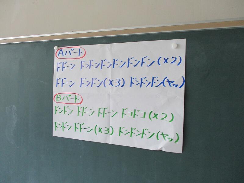 前にも紹介した「ぶち合わせ太鼓」のリズム譜です。いつの間にかパート練習に入っていたようです。