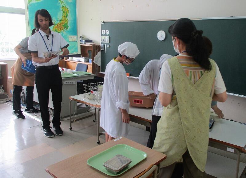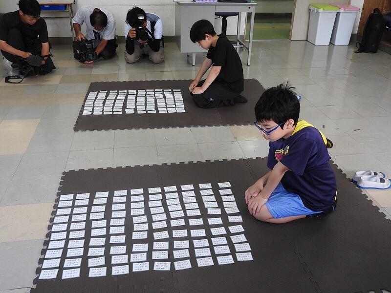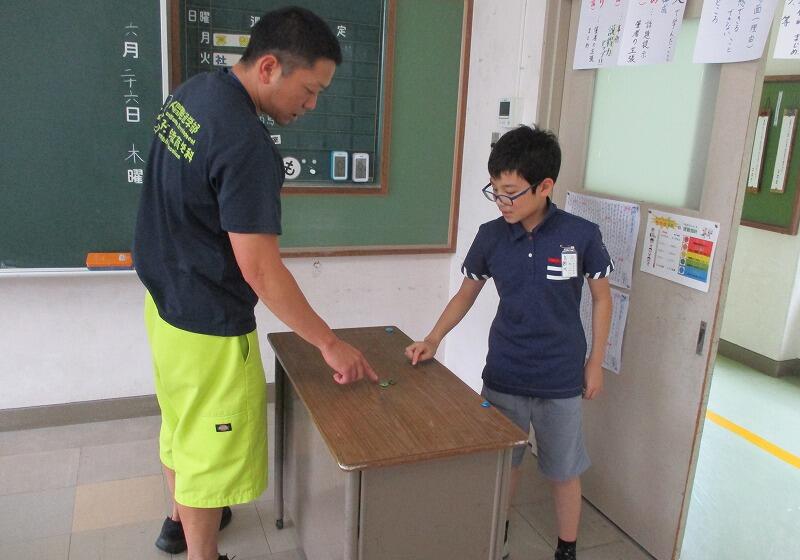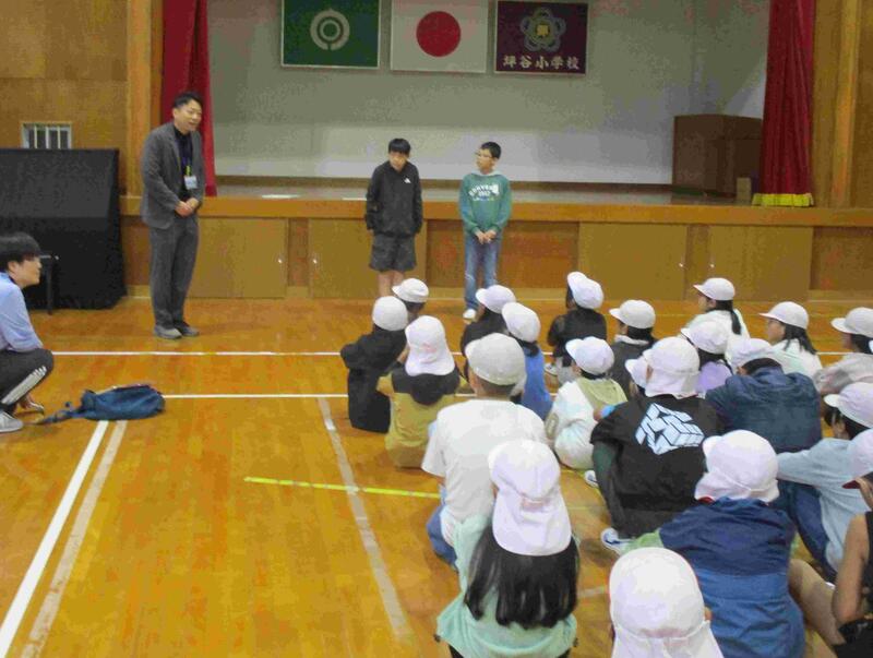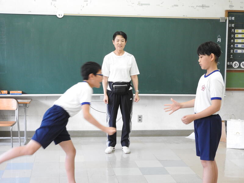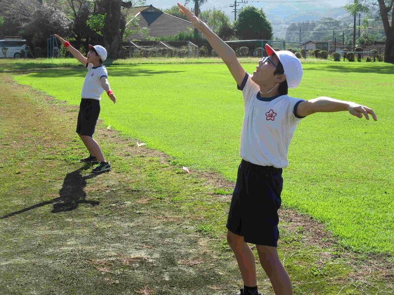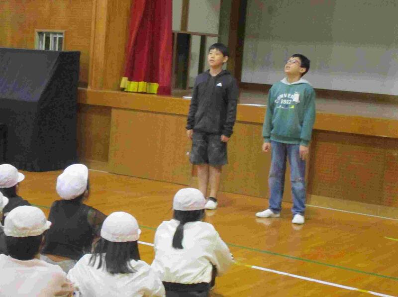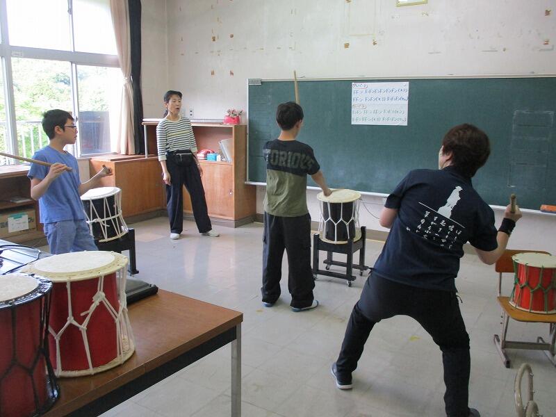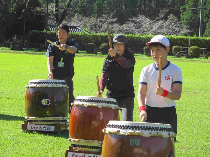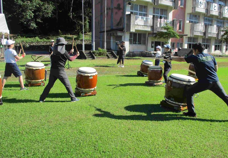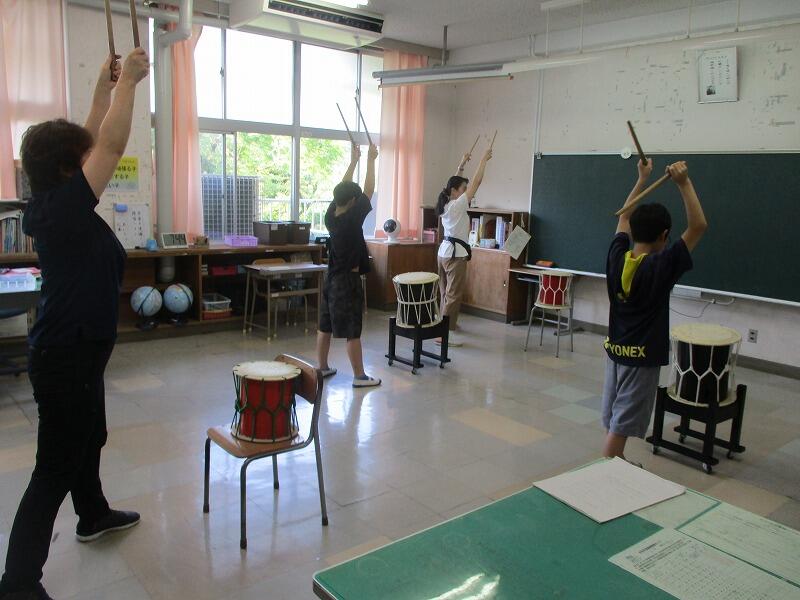 今朝は「ぶち合わせ太鼓」の練習で新たな動きがありました。いつものように3階からの太鼓の音につられて行ってみると、いつも2人のはずが3人になって練習しているではありませんか?その増えた1人の正体は、なんと技術員の方でした。昨年度も「ぶち合わせ太鼓」に携わっていたということで、子ども達に負けない音量と、素晴らしいばちさばき・体さばきでした。まさに「動」で始まった朝でした。