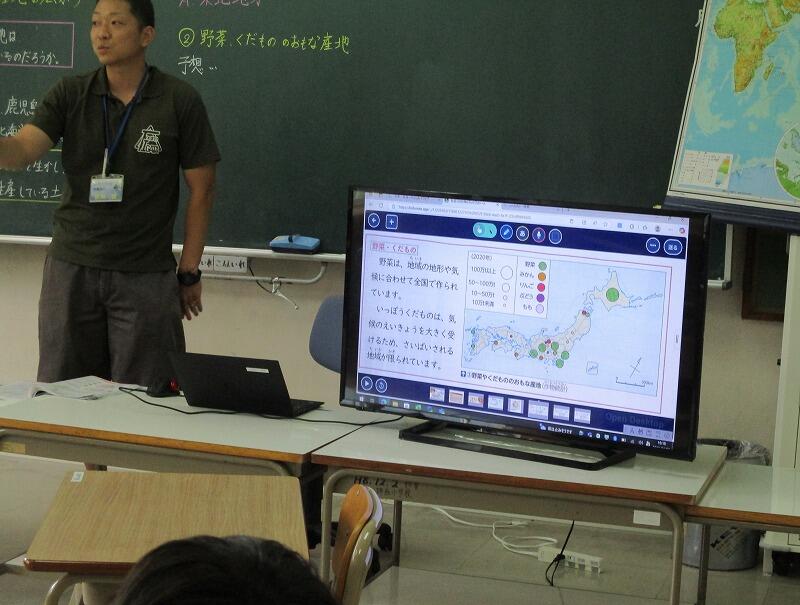 今日は2時間目の社会の授業をのぞいてみました。すると、日本の農作物の産地について予想する学習をしていました。今まで学習した日本の地形や気候等を手がかかりに、野菜の産地は?米の産地は?と、積極的に予想していました。