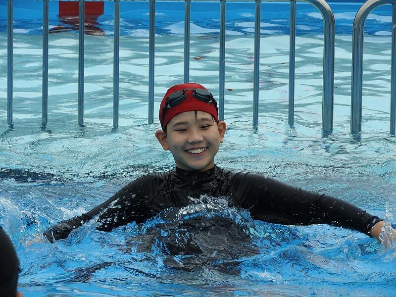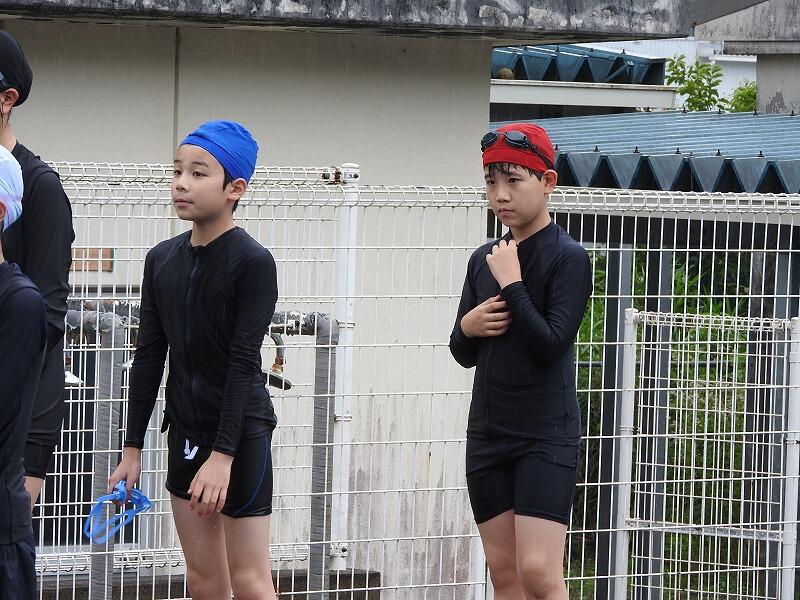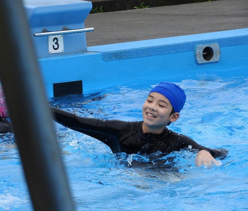 昨日の5・6時間目は、東郷学園のプールにて合同で水泳の授業がありました。本校の2人にとっては1年ぶりの学校での水泳とあって、待ちに待った時間となりました。授業では、準備運動や水慣れをした後、今できる泳ぎで水の感触を確かめていました。水泳は天候(特に雷)に左右されるため、この後授業が全部できるかは分かりませんが、たくさん泳いで自分の力をしっかり伸ばしてほしいものです。