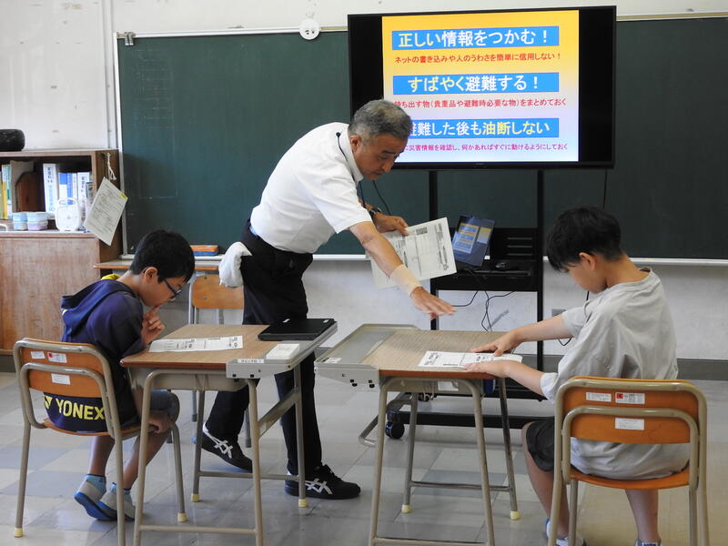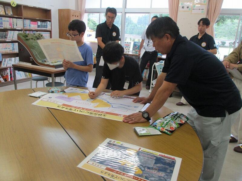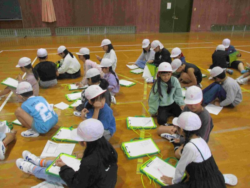 特にハザードマップで危険な箇所を確認する活動では、自分の家や学校がある場所がハザードマップ上のどこにあたるのかを真剣に確認する姿が見られました。今回学んだことをぜひ家族に伝えるとともに、有事の時にはご近所にも声をかけながら避難できるよう意識を高めてほしいところです。