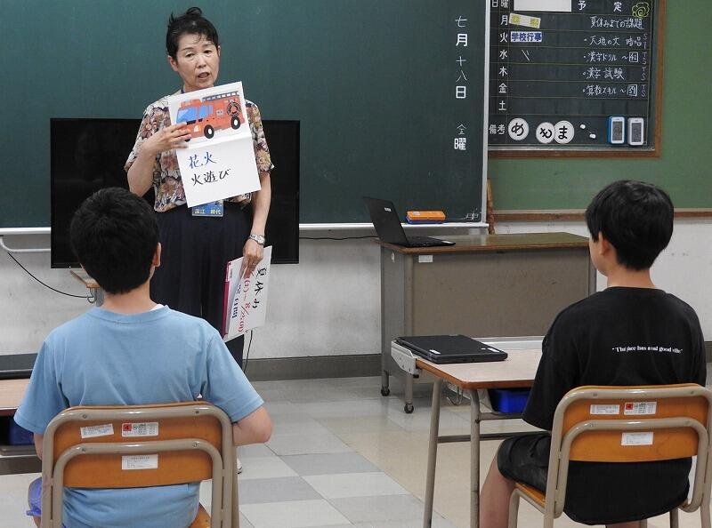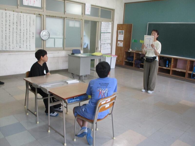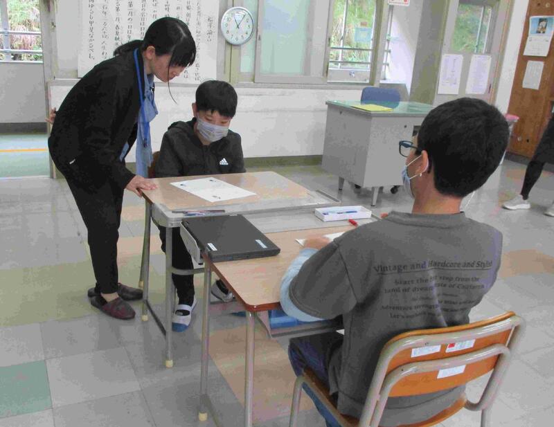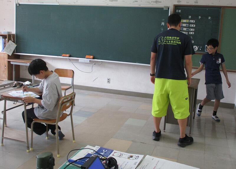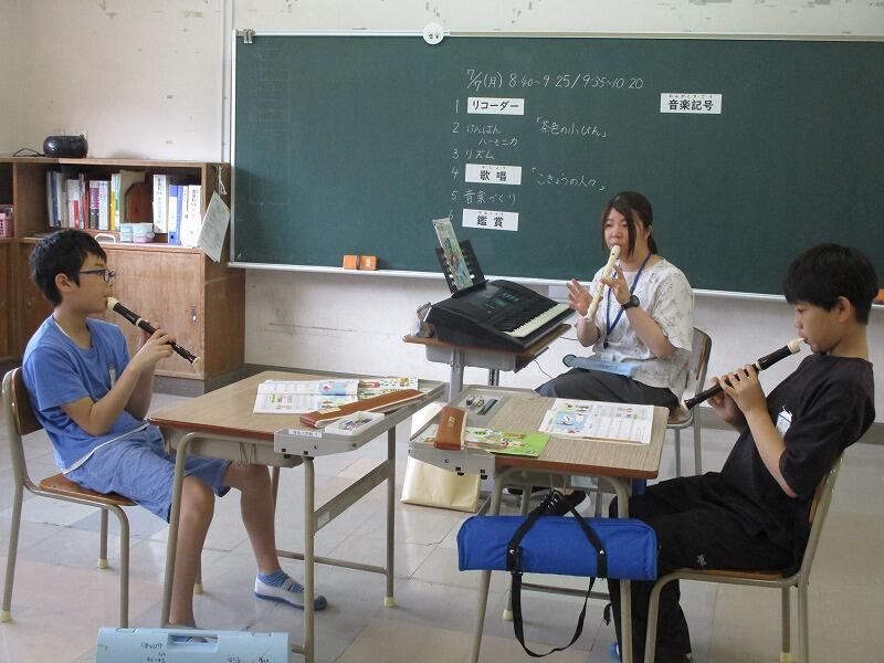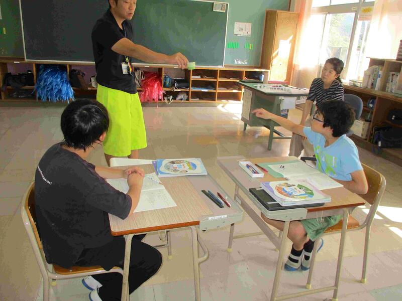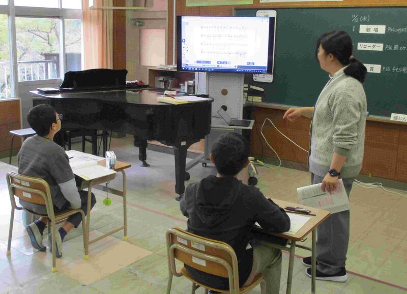 今日は毎週楽しみな音楽の授業がありました。見に行くとちょうど音符の学習をしていました。四分音符は八分音符の何拍分なのか等、大人でもどうだったか思い出すのに時間がかかりそうな学習でしたが、いつものようの教師1人と児童2人、3人でとても楽しそうに授業がなされていました。