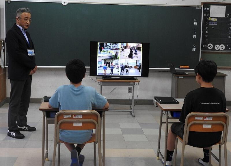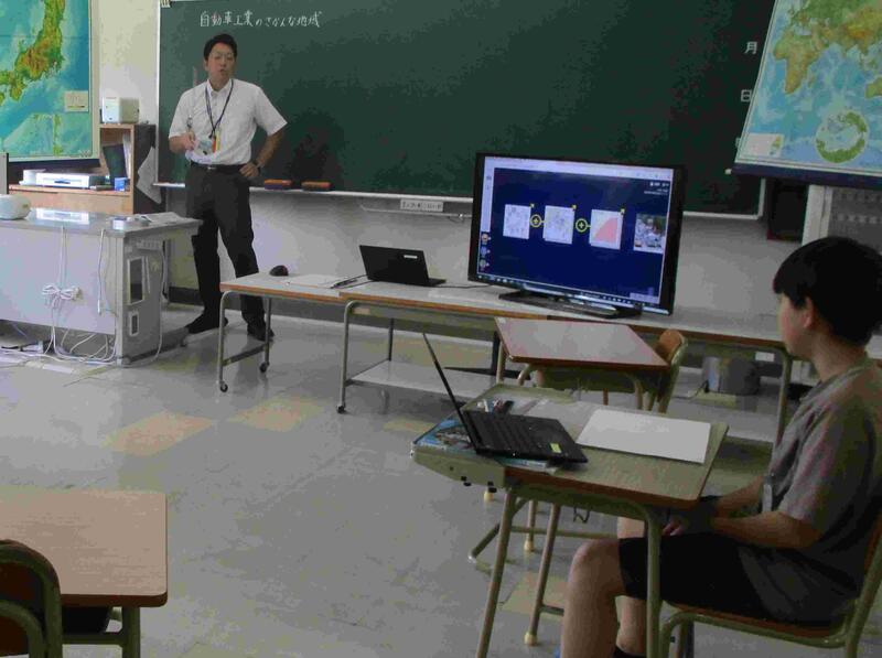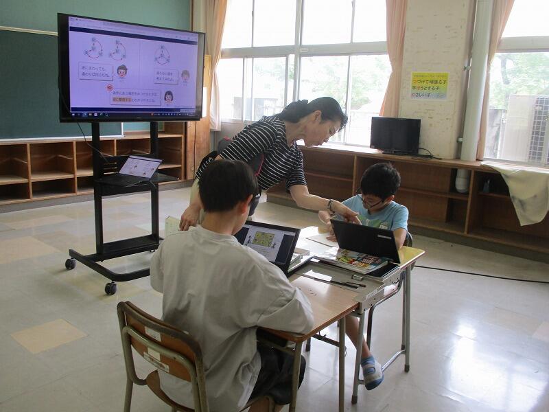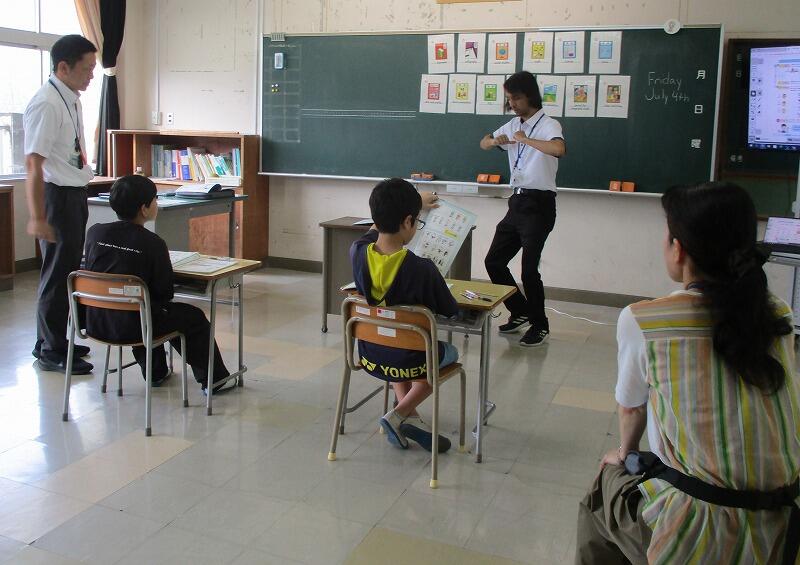 今日はALTのエヴァン先生が来られる日。そこで2時間目の授業を見に行きました。今回の授業は、自分の大好きな町を紹介するという内容でした。まずは映像資料を見て、登場人物が英語でどんなことを話していたかを児童2人で話し合います。そして今日の学習の内容や流れを確認した後、エヴァン先生が住んでいた町の紹介をしてくださいました。2人はエヴァン先生の話を集中して聞き、英語でどんなことを話しているか協力して聞き取っていました。一人だと行き詰まってしまいそうな場面でも、2人なら少しずつでも前に進めます。「仲間となって学び合う」ことができているつぼやっ子たちです。