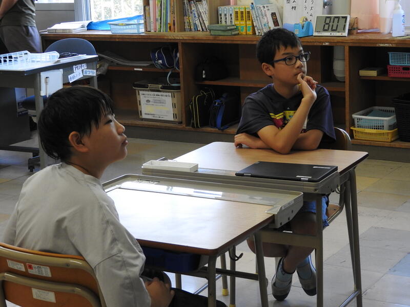 今日の4時間目の外国語活動は、担任や映像資料の英会話を聞いて、どんなことを言っているかを聞き取る学習をしていました。聞こえた単語を2人で言い合いながら、「仲間となって学び合う」学習がしっかりできていました。耳を澄ませて聞くことに集中する、そんな時間を1日の中で少しでも取り入れていきたいものですね。