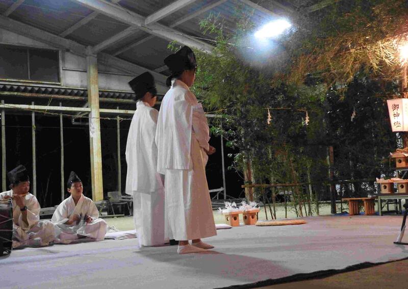 先週の土曜日(8日)に開催された仲瀬神社祭典(宵宮祭)に行ってきました。神事の後には、地区の若手や児童・生徒による神楽も披露され、とても温かい雰囲気の中で楽しい時間を過ごさせていただきました。神楽好きの筆者にとっては、太鼓のリズムや、体のさばき方・移動の仕方、舞台の作りなど、どれも興味深いことばかりで時間がたつのを忘れるほどでした。神楽の披露に地区の皆さんの心を込めたおもてなしに感謝・感謝の夜でした。
