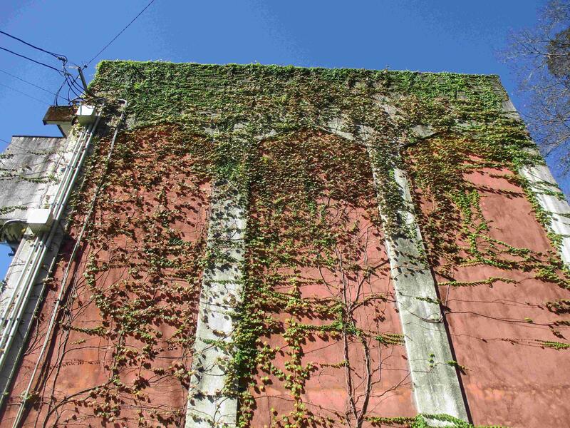 また、校舎体育館側の壁を見上げると、蔦(ツタ)と思われる植物が茂っていました。空の青ととても映えていたので思わず写真に撮りました。坪谷の何気ない風景、これからも取り上げていきますね。