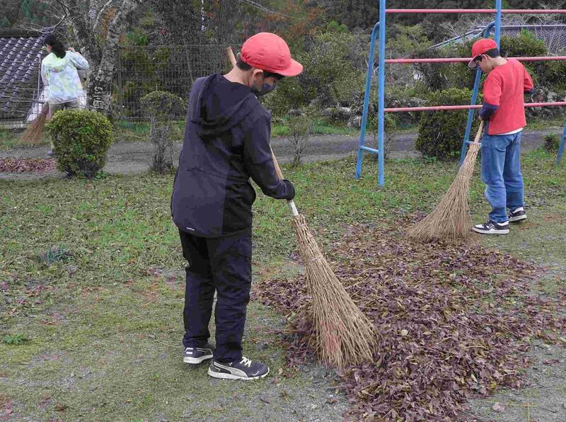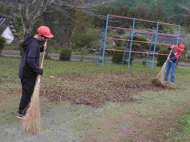 写真は先週の委員会活動の様子です。本校の委員会活動は前にも紹介したように美化活動が中心です。今回は落ち葉はきを行っていました。