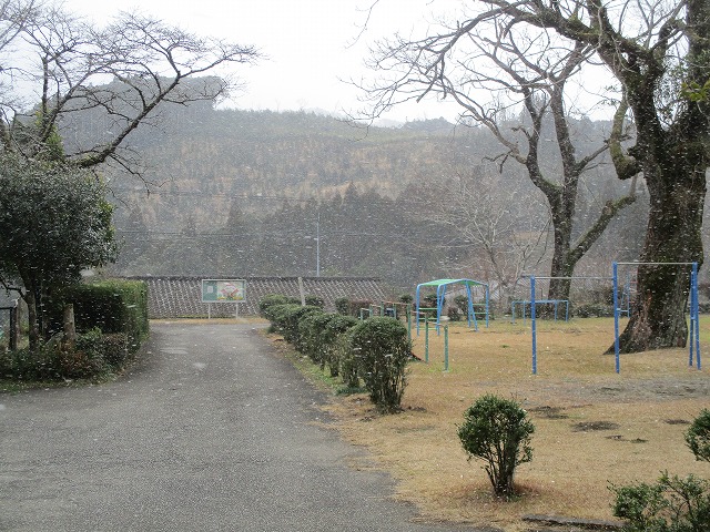 坪谷小学校でも午前中のうちから雪が舞っていました。