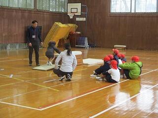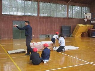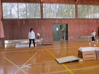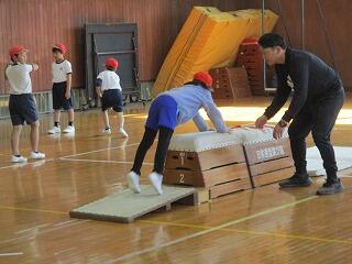 体育館では、とび箱遊びに下学年が取り組んでいました。