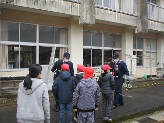 実は3・4年生の社会科の学習で警察の方に来てもらいました。