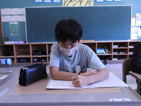 複式学級ならではの「わたり」の間も、坪谷小ならではの風景。保護者の方が、先生の代わりにマンツーマンで考える姿がいいです。