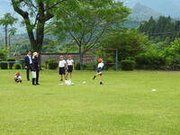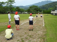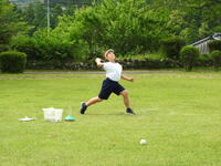 坪谷小のみなさん、緑広がる運動場での投げ心地はいかがでしたか?50m走も、気持ちよさそうでしたよ。