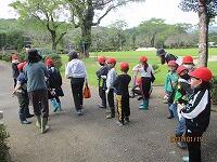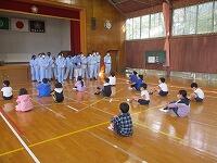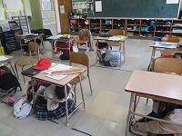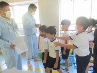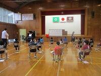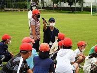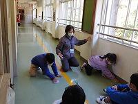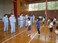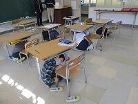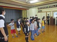 その場合、無言でいかに迅速に避難できるかが大切になります。事前指導が徹底してあり、写真では伝わりませんが避難中全く子どもたちの声は聞こえませんでした。さらに、安全担当の職員の話も集中してしっかりと聞くことができました。残念ながら、この時間帯雨が強くなったため、公民館までの避難は省略しましたが、緊張感をもって真剣に取り組むことができたように思います。