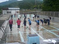 なお、子どもたちがリハーサルをがんばっている中、学校では、保護者や卒業生たち(中学生・高校生)、元保護者の方々がプール清掃をしてくださいました。5月に予定していた奉仕作業が中止になり、職員で何とかしようと考えていたのですが、そのことを知り、心配された保護者の方から、自分たちで連絡を取り合って、プール清掃をしていただけるとの申し出がありました。学校に待機していただいていた事務室の先生方に確認すると30名を超す多くの方々が参加していただき、隅々に至るまで美しいプールにしていただきました。こんなに学校のことを考えて行動していただける保護者の皆様に感謝の気持ちでいっぱいです。本当にありがとうございました。こんなに協力的で学校のために頑張ってくださる保護者の方がいらっしゃる坪谷小は、幸せです。